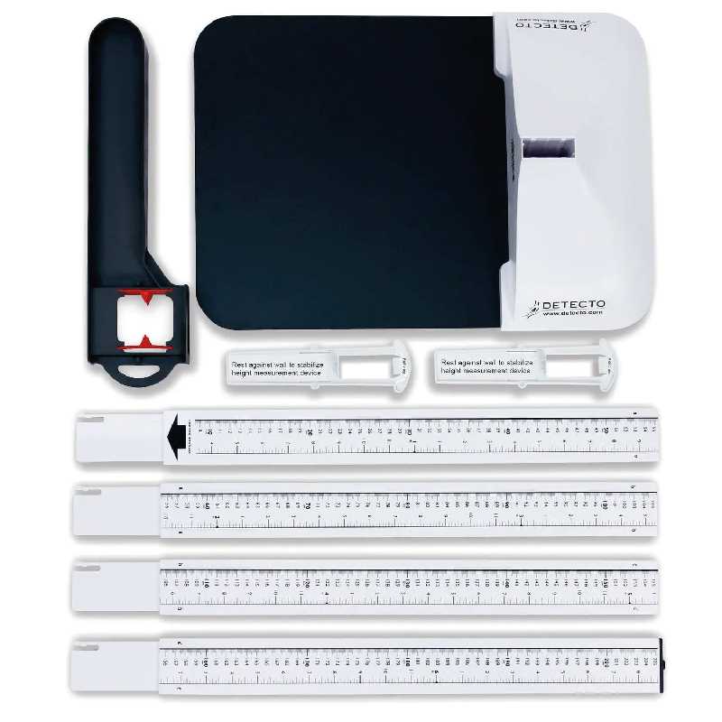 El tallímetro portátil PHR de DETECTO es simple de configurar y fácil de usar. No es necesario fijarlo a la pared y se puede colocar contra una pared o completamente independiente gracias a su gran placa de suelo. Dos espaciadores brindan estabilidad adicional cuando se colocan contra una pared. El estadiómetro PHR cuenta con un exclusivo cabezal reversible que le permite agregar una báscula digital de piso DETECTO DR400C en la base para medir el peso y la altura simultáneamente. Si utiliza el PHR sin una báscula DR400C en la base, simplemente dé la vuelta al cabezal. Se encuentra disponible un estuche de transporte PHR-CASE opcional con correa para el hombro que se adapta al PHR y al DR400C.
