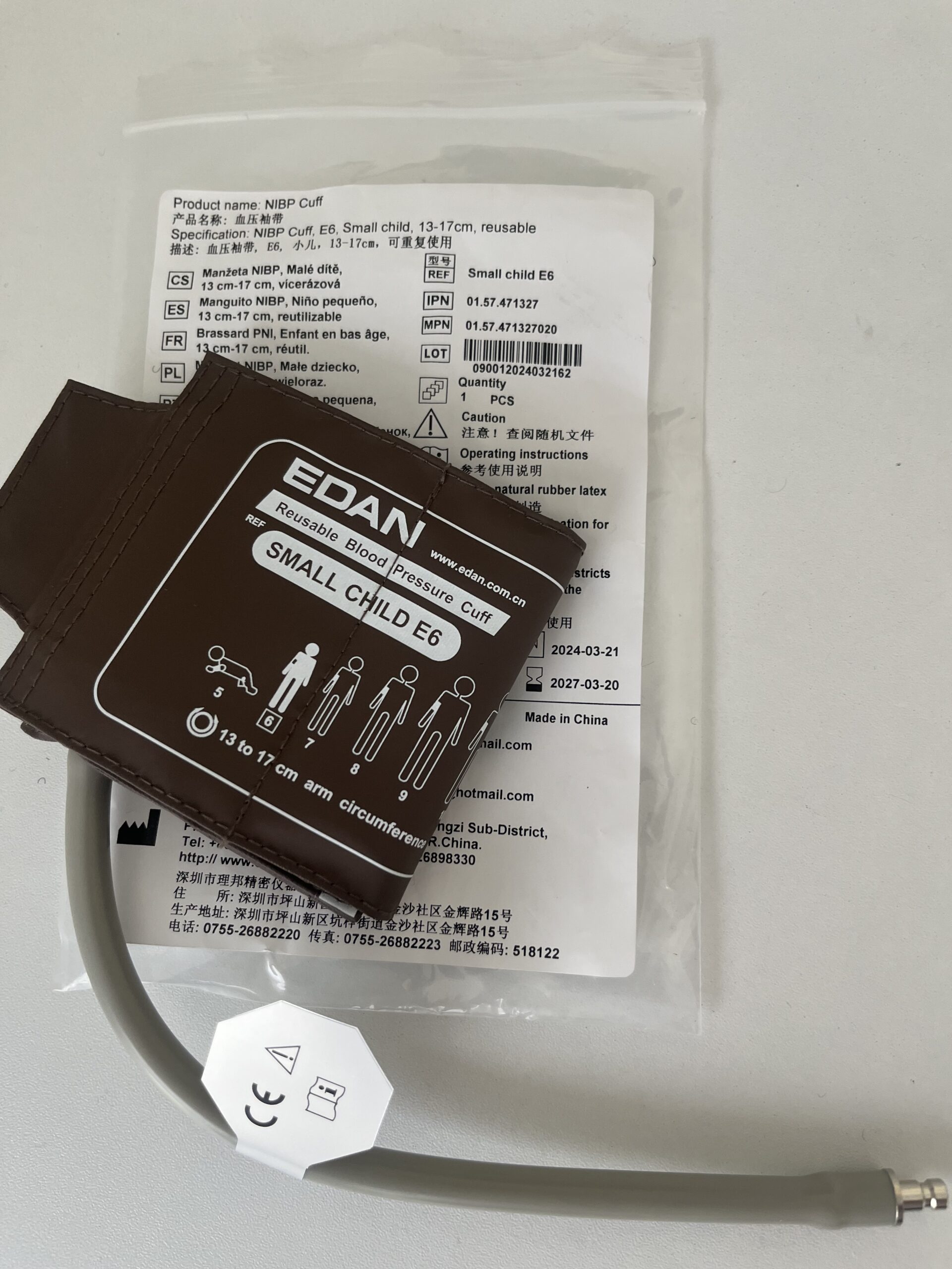 Manguito NIBP, niño pequeño, 13 cm-17 cm, reutilizable, EDAN