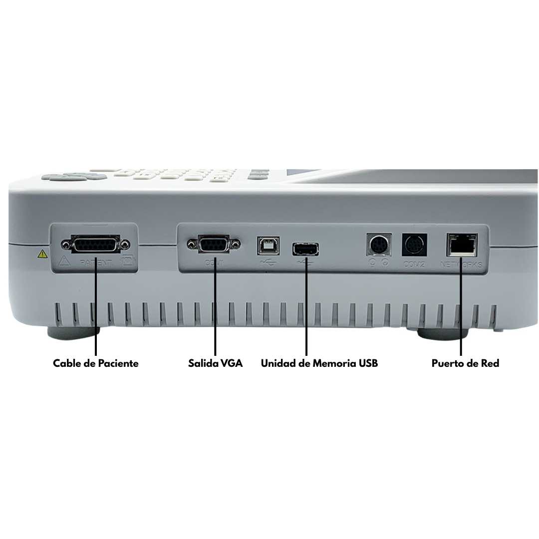 4. Almacenamiento interno de hasta 800 ECGs y puede ampliarse mediante un disco flash USB