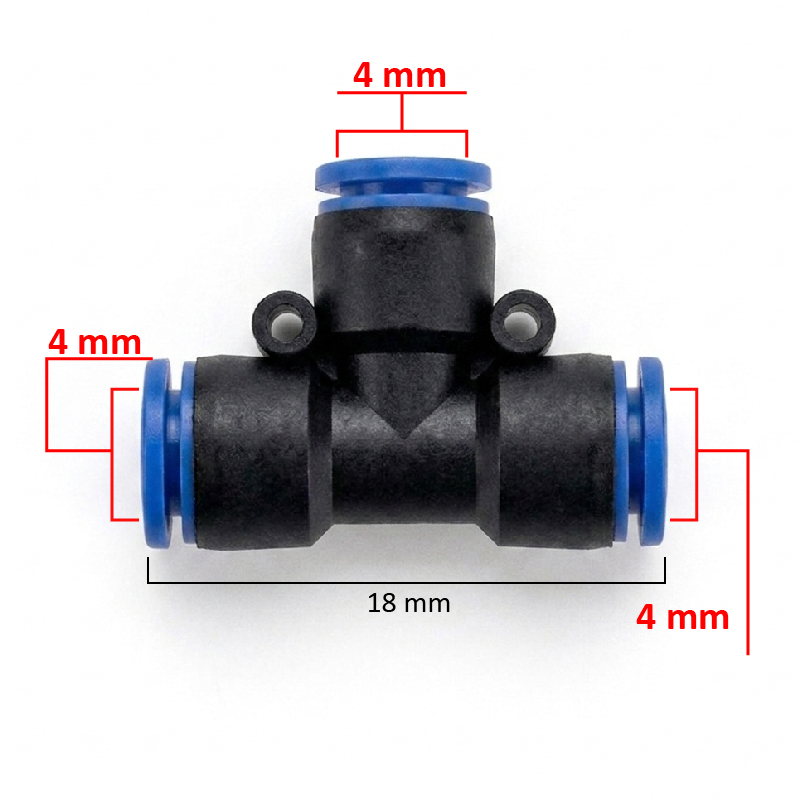 Conector neumático T de 4mm